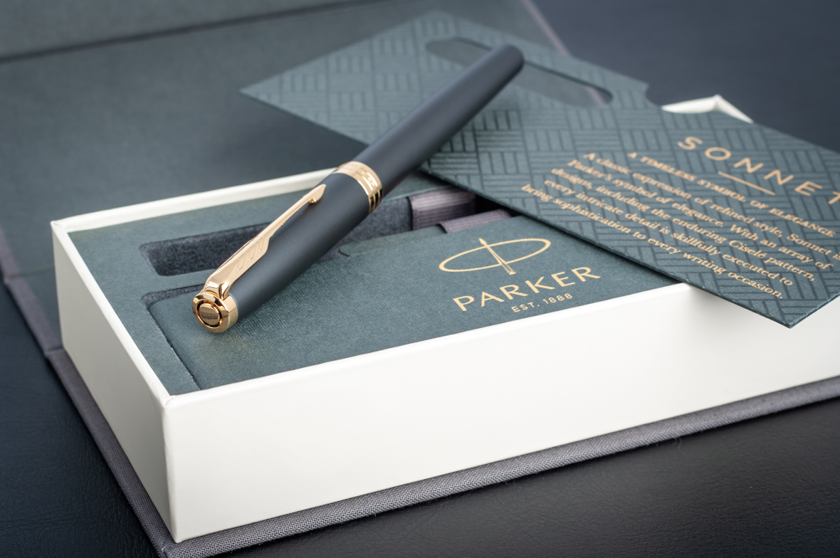 Перьевая ручка Parker Sonnet Matte Black GT от официального дилера Parker в Кирове. Вы можете дополнительно заказать гравировку, которая подчеркнет Вашу оригинальность и придаст памятность статусному подарку. Все ручки Паркер поставляются в фирменном футляре.