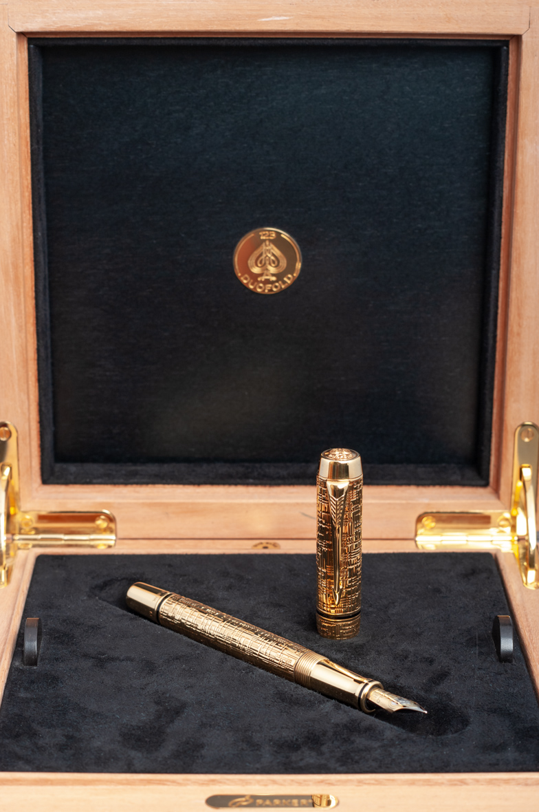 Перьевая ручка Parker Duofold Solid Gold F К от официального дилера Parker в Кирове. Вы можете дополнительно заказать гравировку, которая подчеркнет Вашу оригинальность и придаст памятность статусному подарку. Все ручки Паркер поставляются в фирменном футляре.